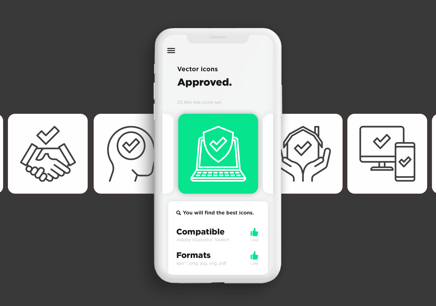 Approved | 25 Thin Line Icons
