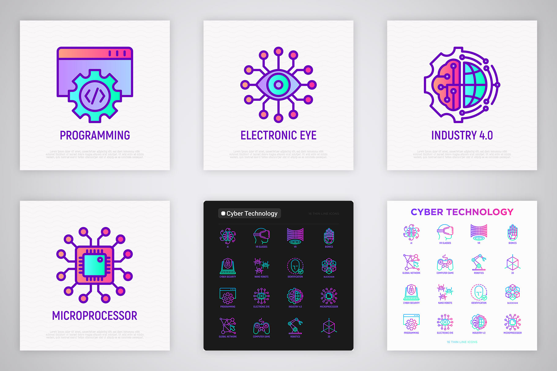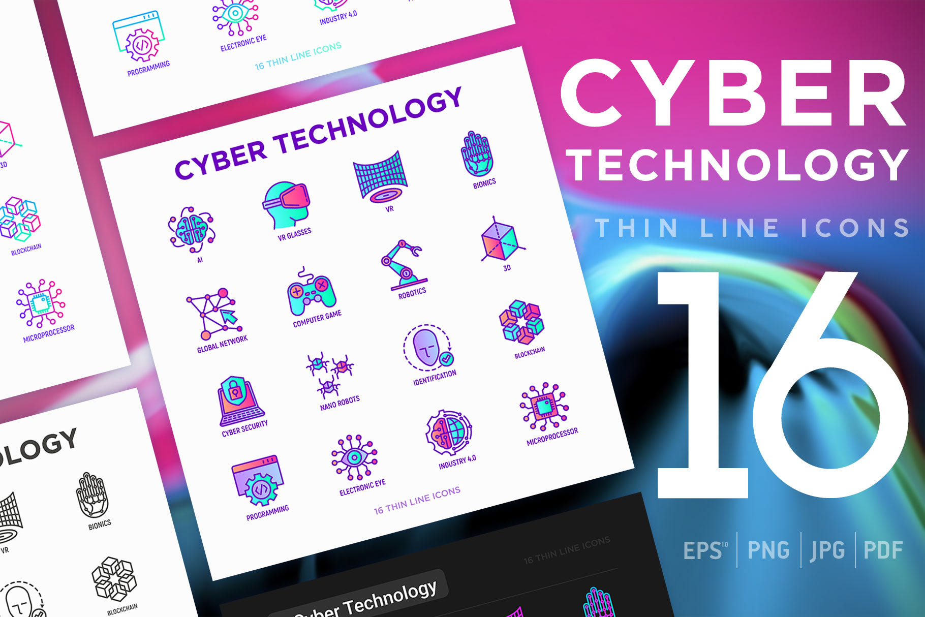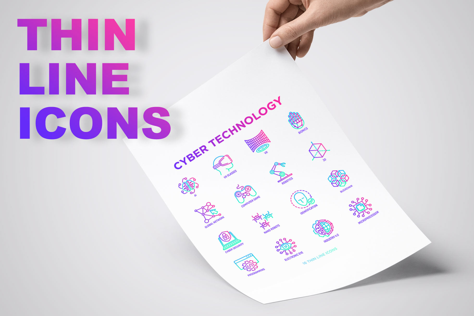 Features: 16 Thin Line Icons, Icons Set For Black Theme, EPS10 / JPG / PNG / PDF