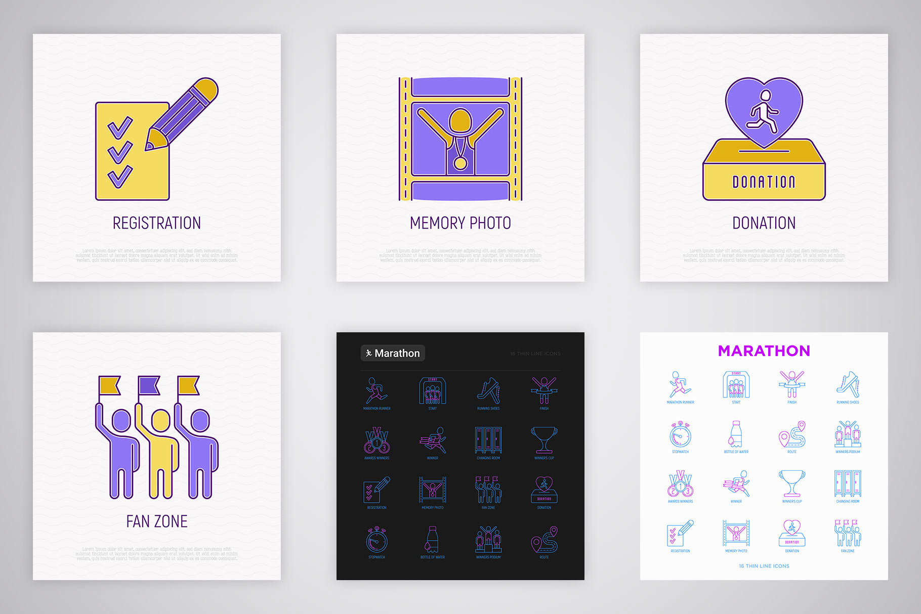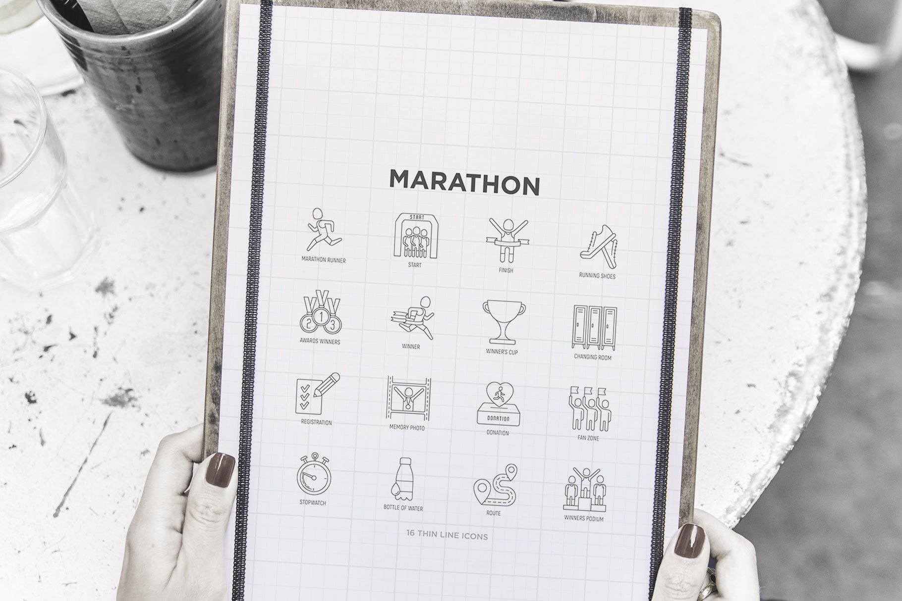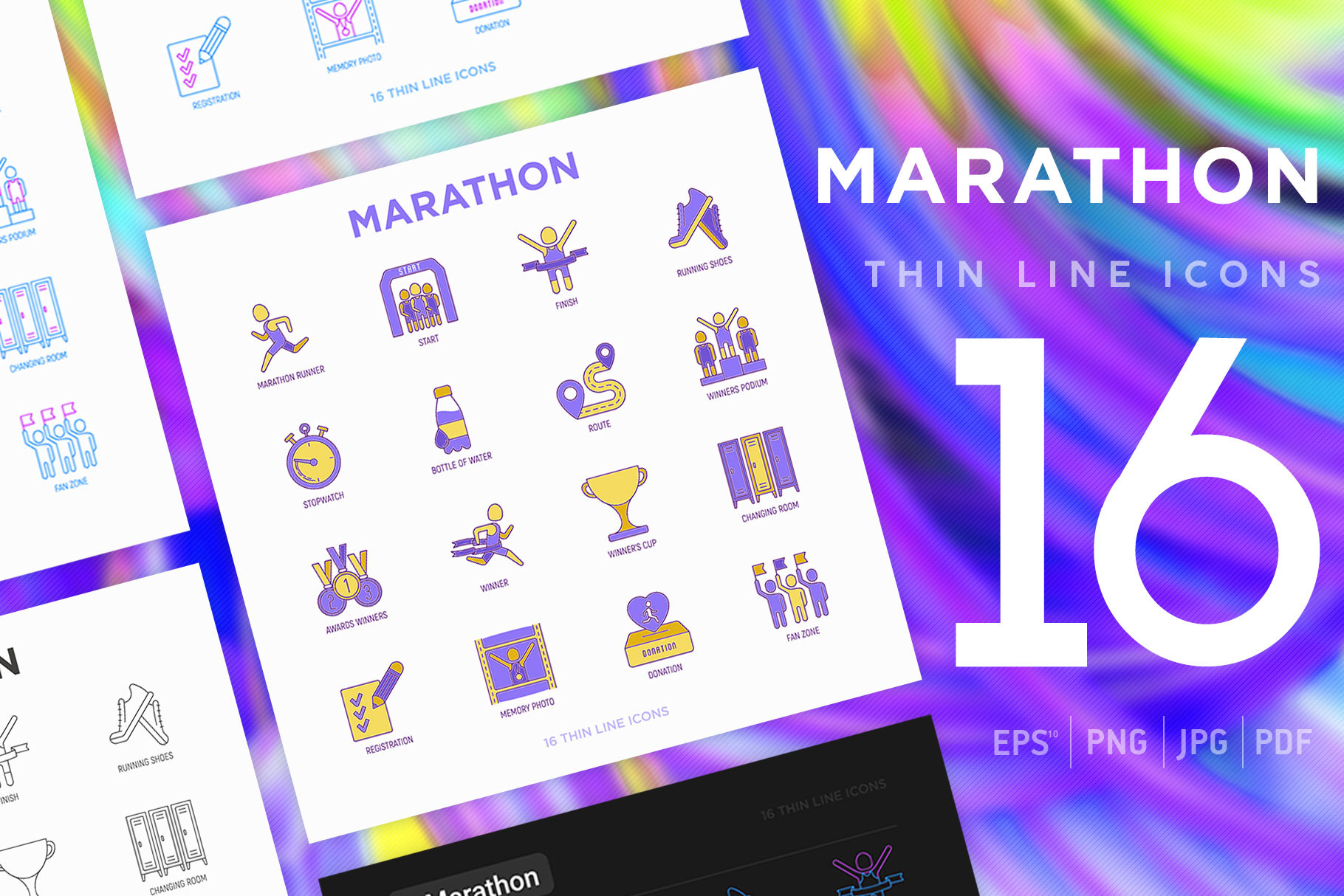 Marathon | 16 Thin Line Icons Set