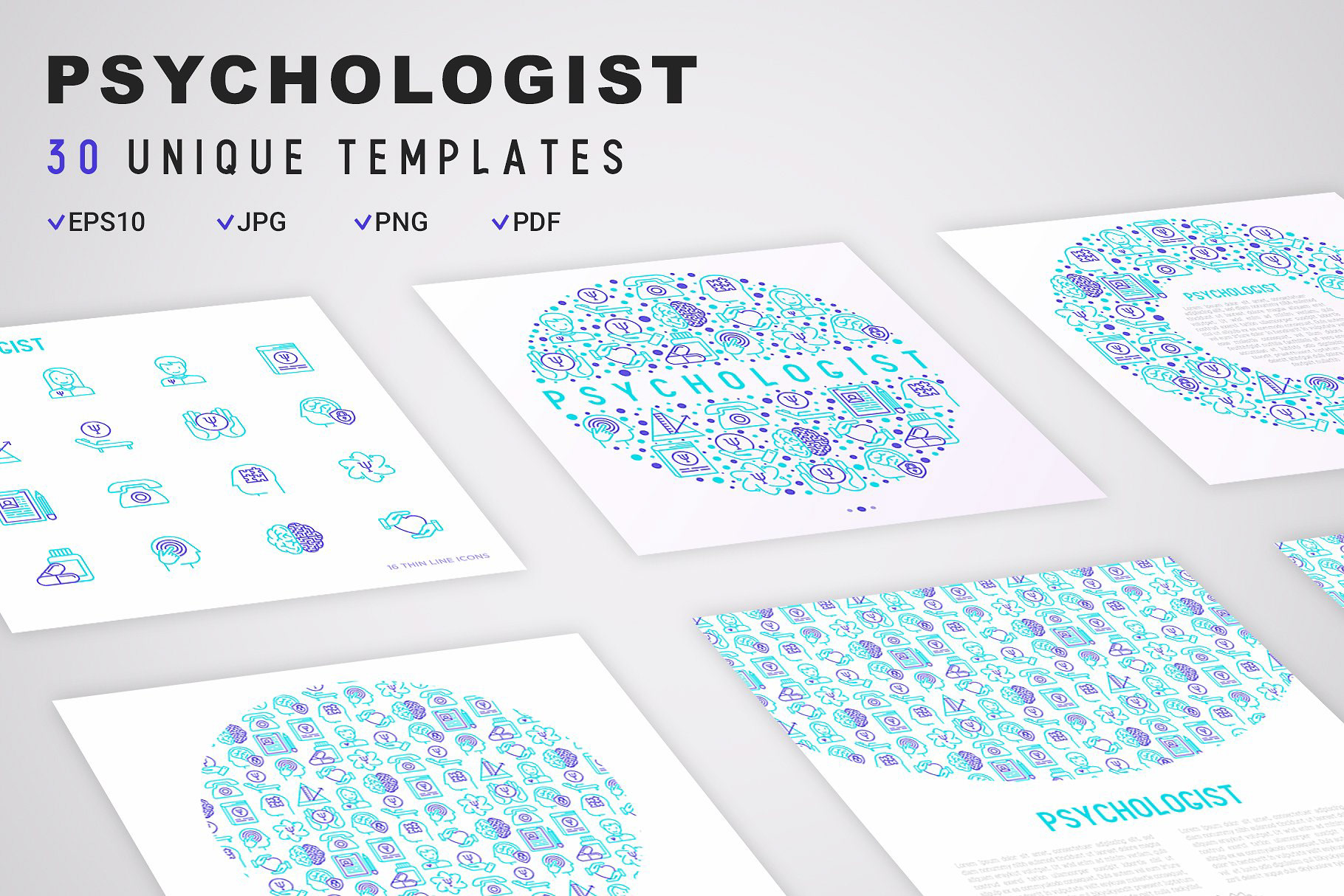 Features : 30 Unique Templates, 16 Thin Line Icons, EPS10 / JPG / PNG / PDF