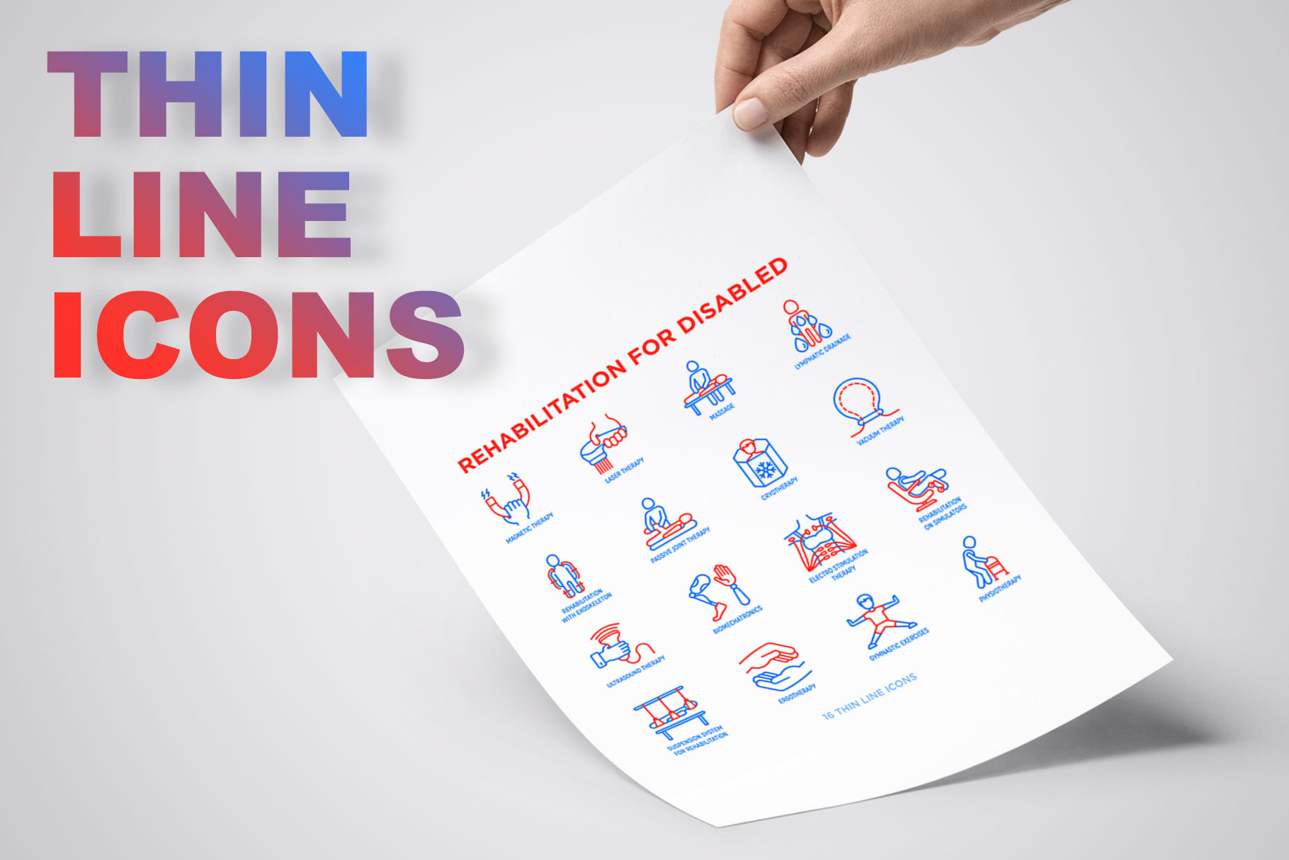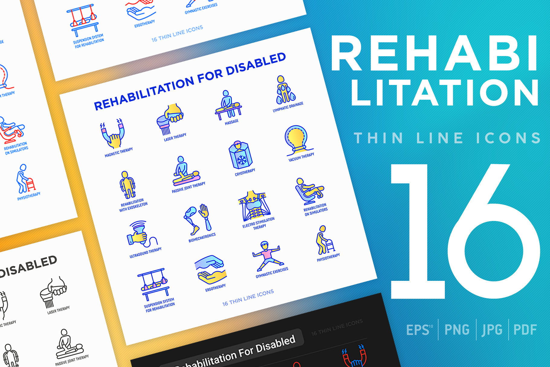 Rehabilitation for disabled | 16 Thin Line Icons Set