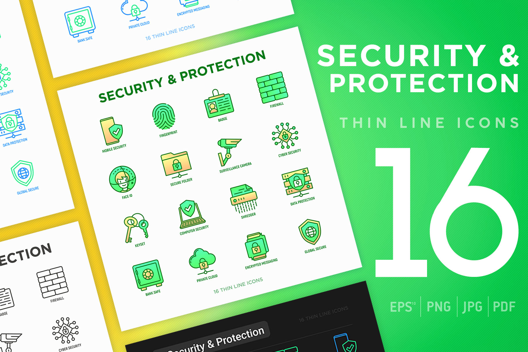 Features: 16 Thin Line Icons, Icons Set For Black Theme, EPS10 / JPG / PNG / PDF